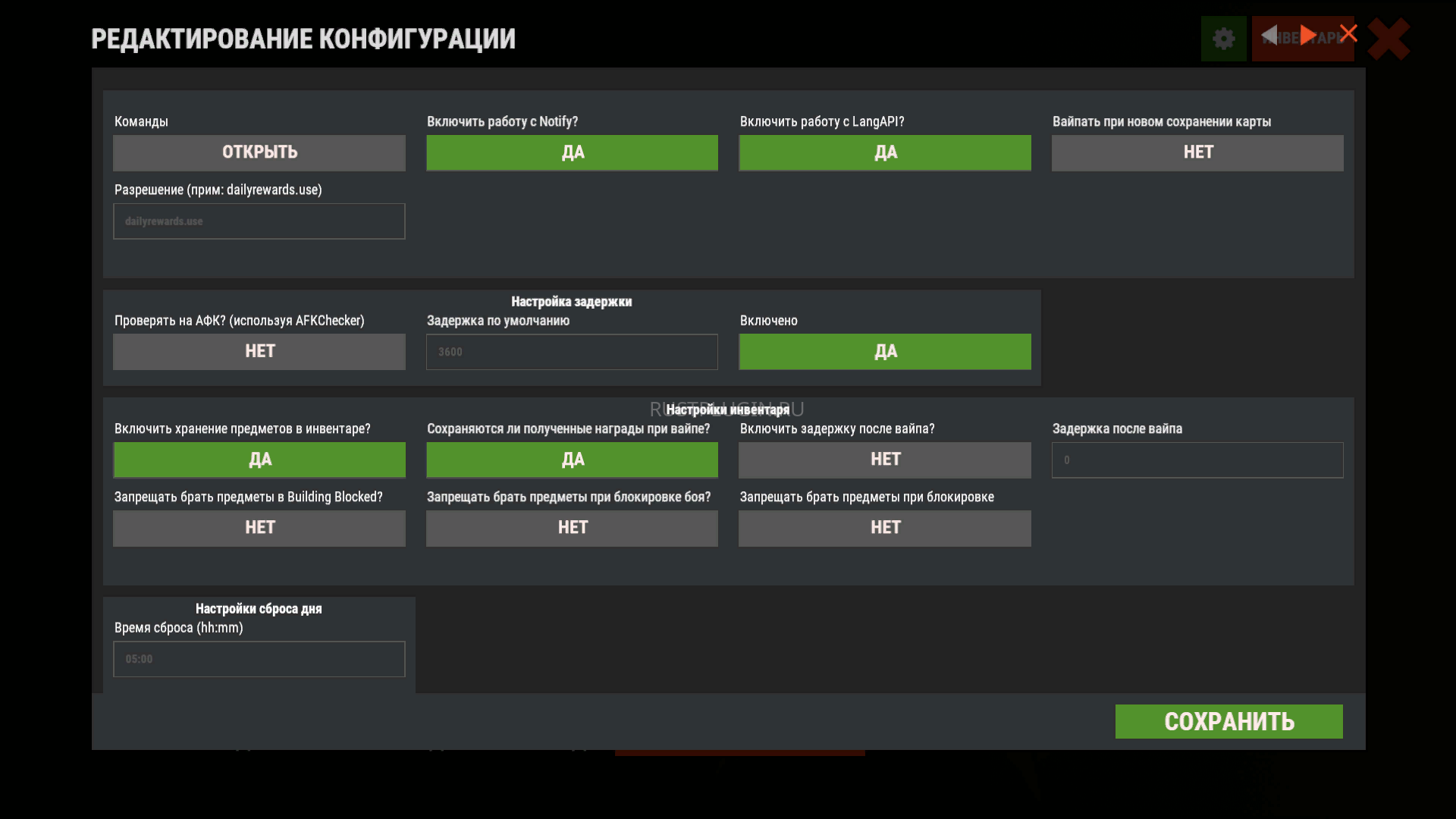 - [Added] Режим интервалов - новая настройка конфига для сброса наград по пользовательским интервалам в часах вместо ежедневного (например, каждые 12 или 48 часов)