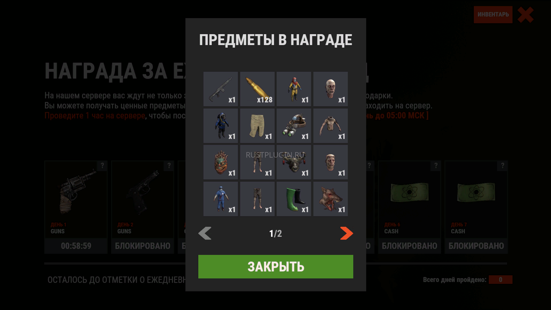 - [Fixed] Теперь корректно учитывается возможность следующего дня. Если вы использовали все дни, то вы увидите "ДЕНЬ ПРОЙДЕН", а не время cooldown до получения награды.