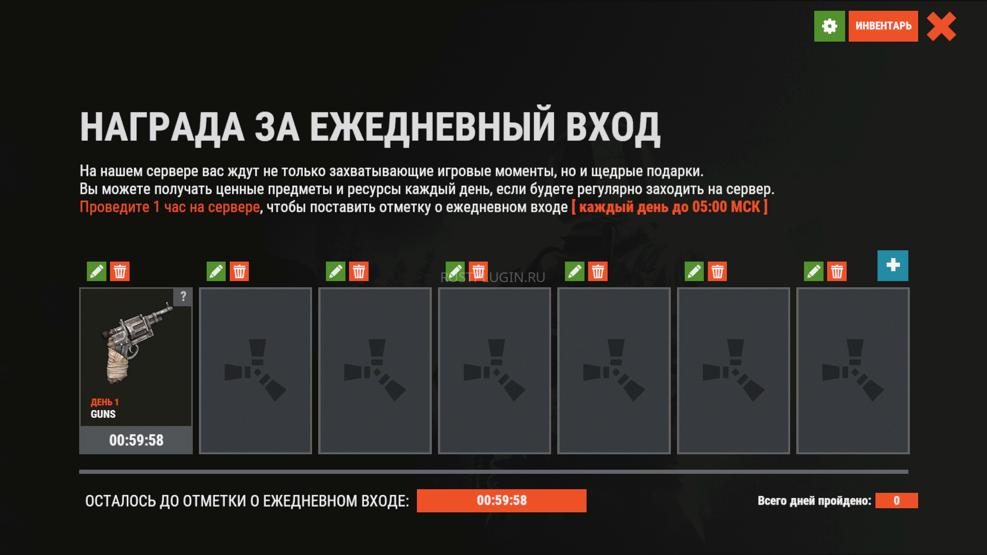 - [Added] Когда вы удалили все дни, в плагине теперь есть кнопка, чтобы добавить первый день наград