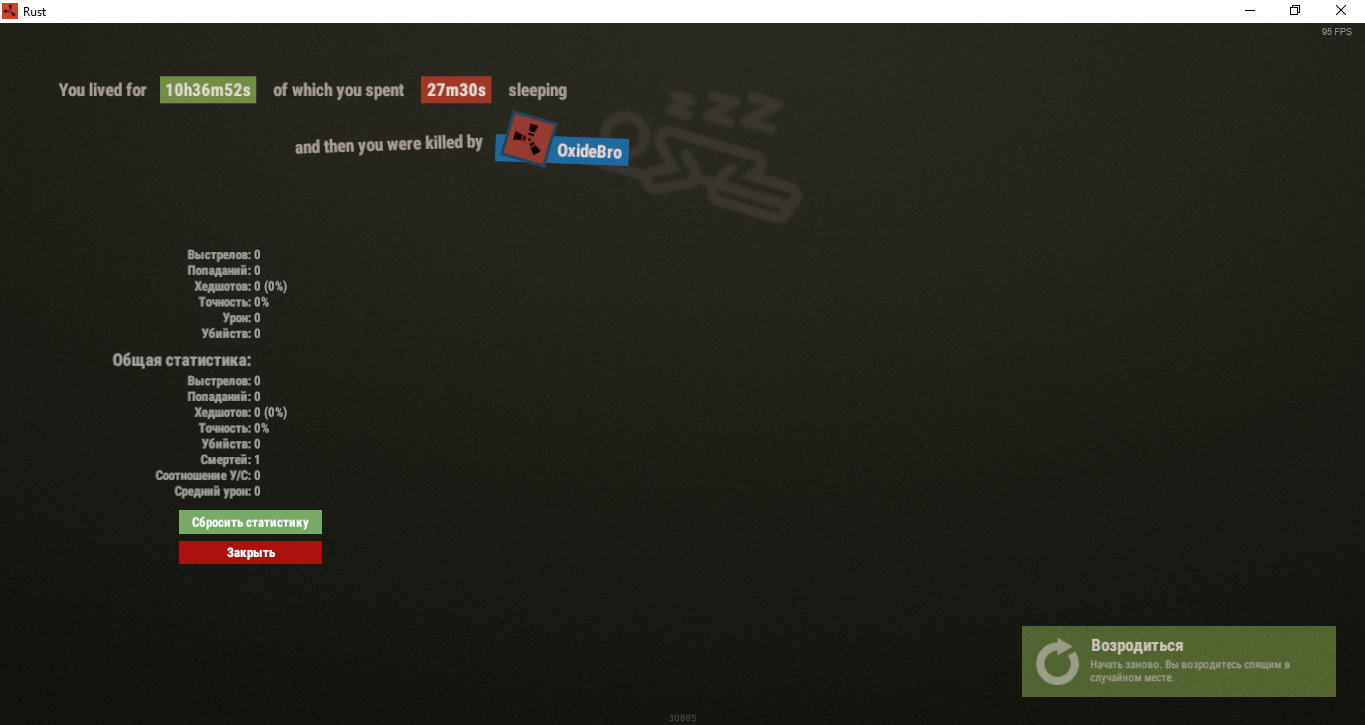 Отображение статистики на экране смерти