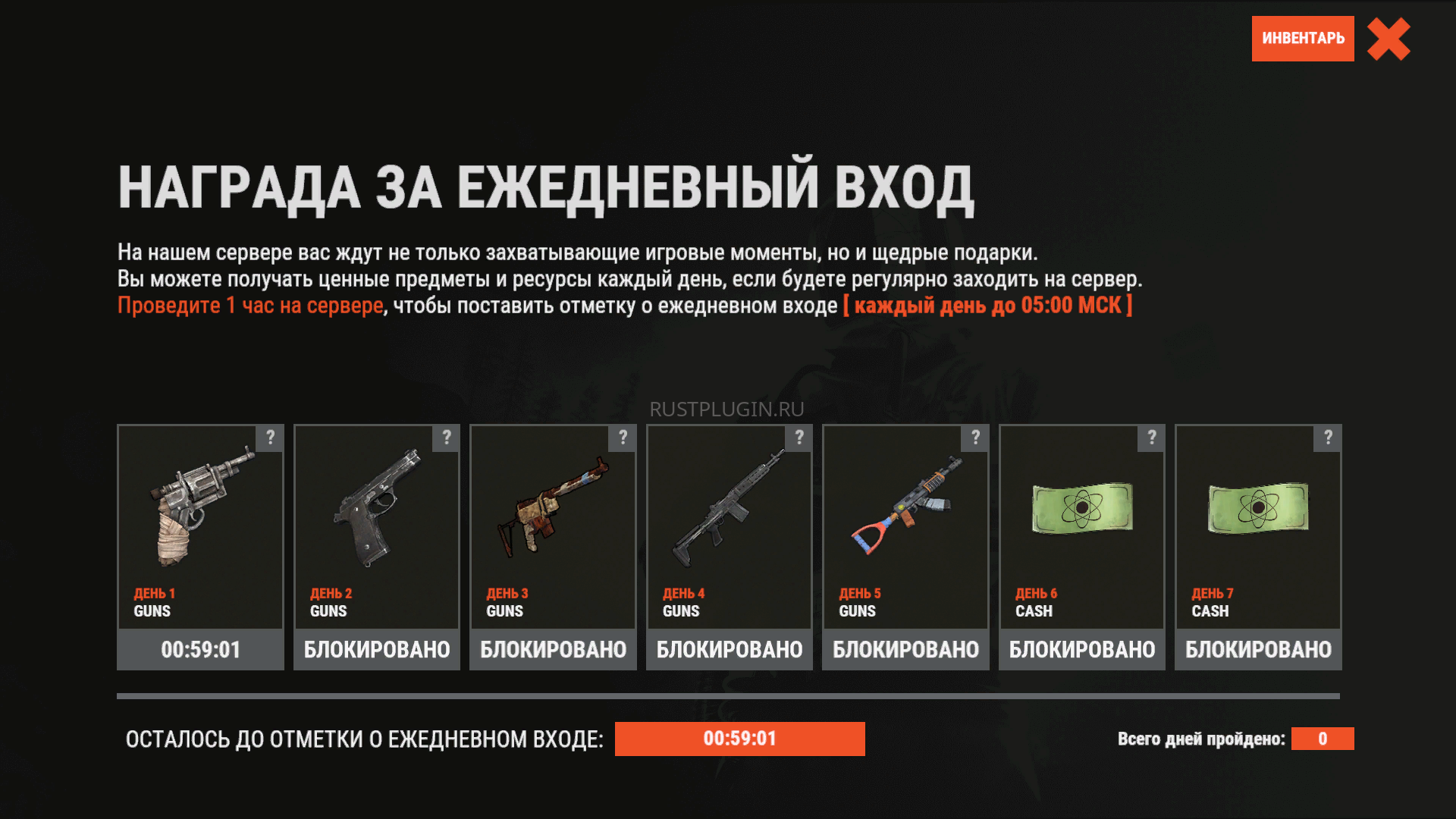 - [Fixed] Теперь корректно учитывается возможность следующего дня. Если вы использовали все дни, то вы увидите "ДЕНЬ ПРОЙДЕН", а не время cooldown до получения награды.