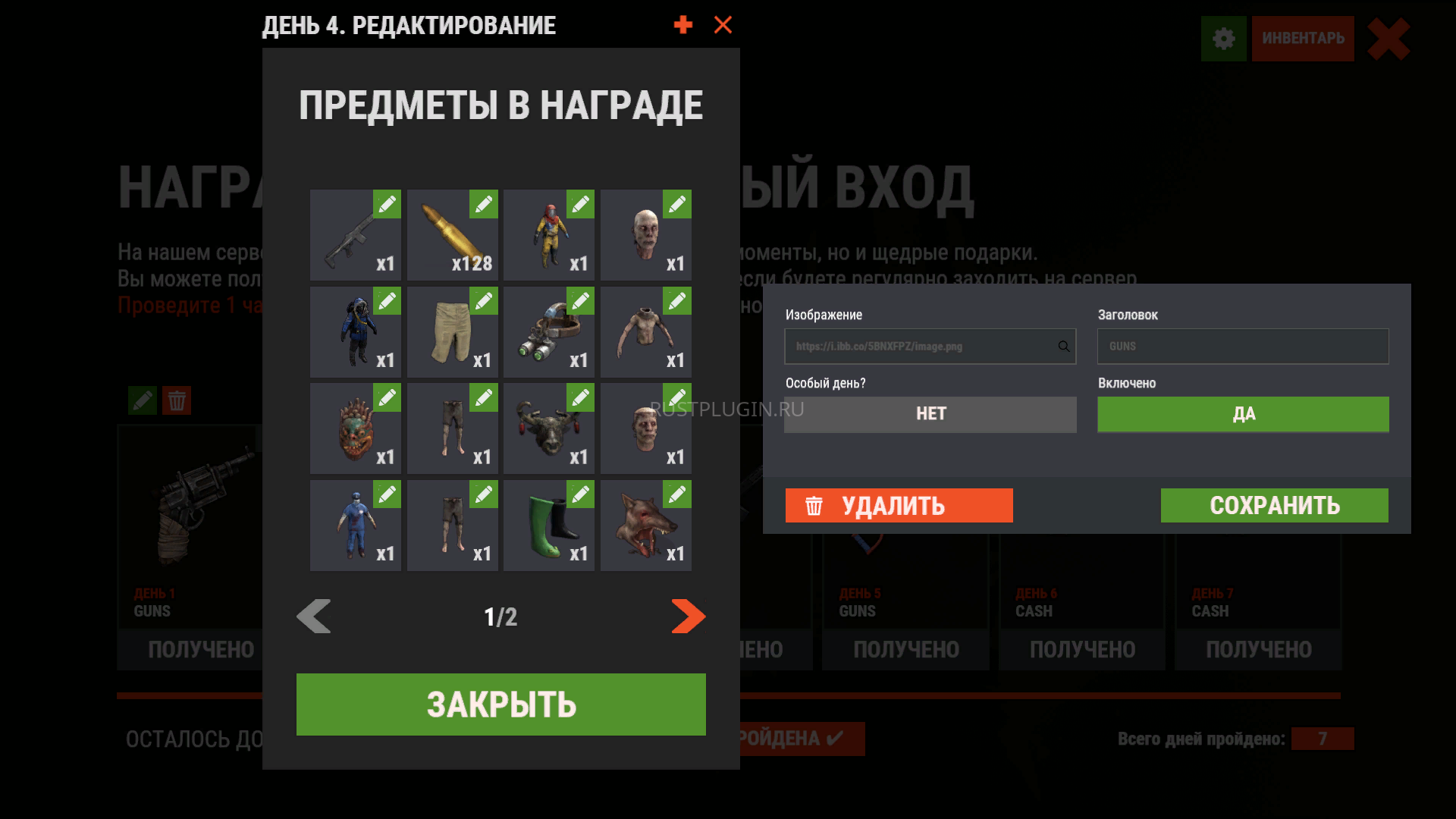 - [Added] Когда вы удалили все дни, в плагине теперь есть кнопка, чтобы добавить первый день наград
