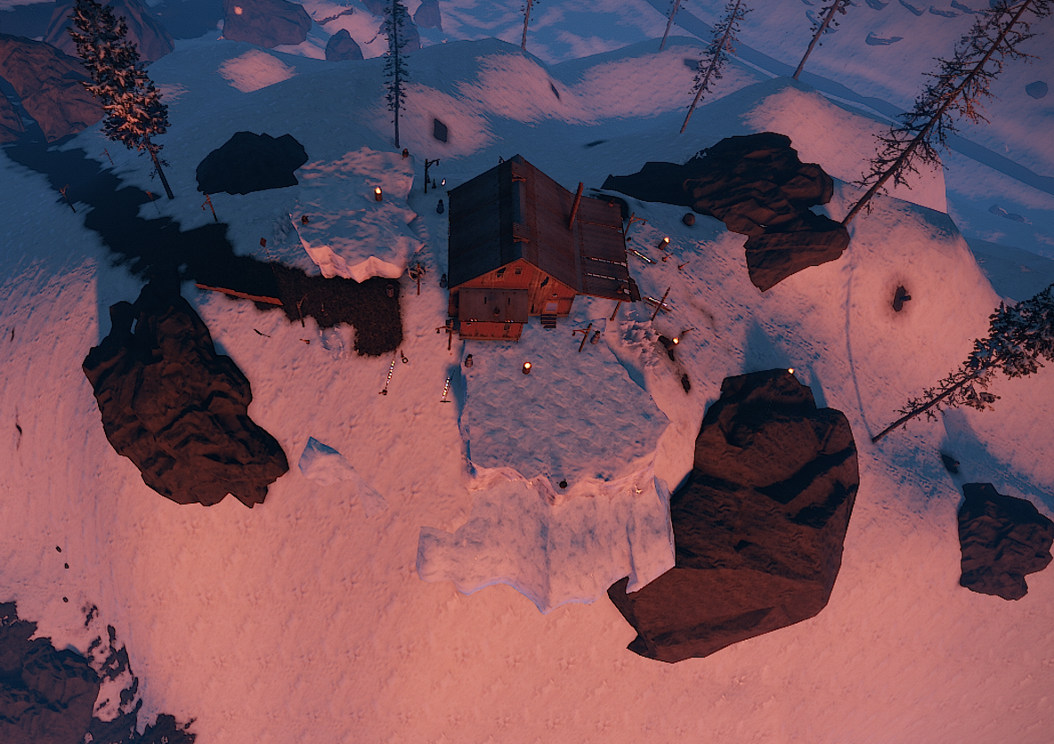 Сам префаб с минимальным кол-вом ресурсов (ящики под ёлкой - "подарки"), в здании находится магазин с продающимися санками.