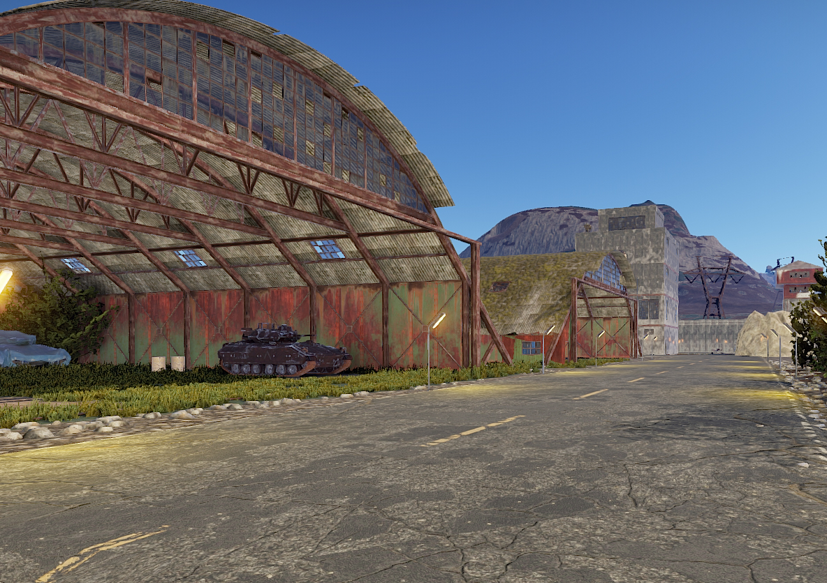 На территории множество зданий с небольшим кол-вом ресурсов.