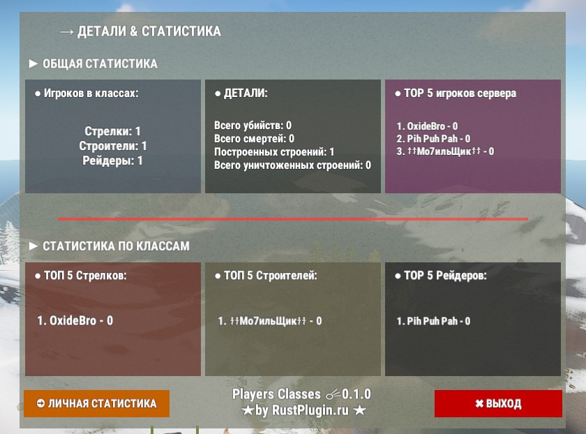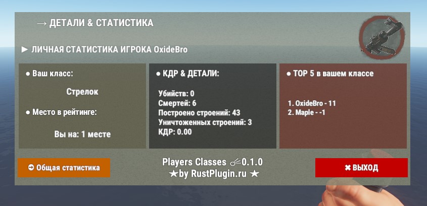 "cmdHelp": "PlayerClasses by RustPlugin.ru\nКоманды администратора:\n /getclasses NAME/STEAMID - Узнать класс игрока и его статистику\n /getclasses replace NAME/STEAMID CLASSES - Сменить класс игрока в указаный (Личная статистика не будет удалена)\n /getclasses remove NAME/STEAMID - Удалить игрока с его выбраного класса (Личная статистика игрока будет удалена)",