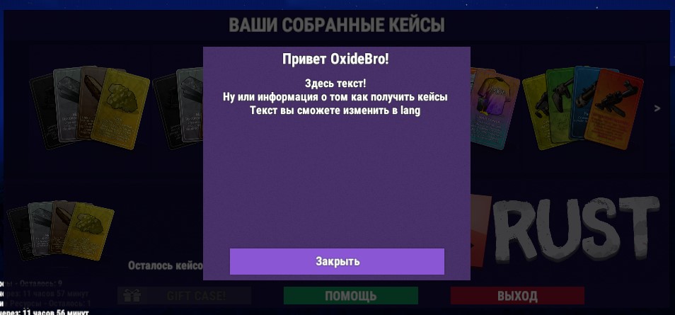 "customText": "Здесь текст!\nНу или информация о том как получить кейсы\nТекст вы сможете изменить в lang"